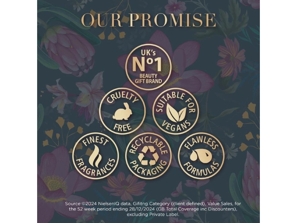 Začína to veľkorysosťou, o ktorej babička Baylisová aj babička Hardingová niečo vedeli. Všetko naplnené až po okraj, tu žiadna polovica. Vytlačíme ženšen a čierne korenie, anglickú levanduľu a harmanček, sladkú mandarínku a grapefruit. Vždy nás učili byť liberálni s našimi ingredienciami a milujeme ten malý kúsok zhovievavosti, ktorý udržuje život výnimočný. A ako postupujeme vpred do novej éry, vyvíjame sa a počúvame potreby našich verných zákazníkov a ešte viac zohľadňujeme svet okolo nás. Sme na ceste krok za krokom. Spoločne sa staráme o naše luxusné značky, aby boli udržateľnejšie s ohľadom na budúce generácie.