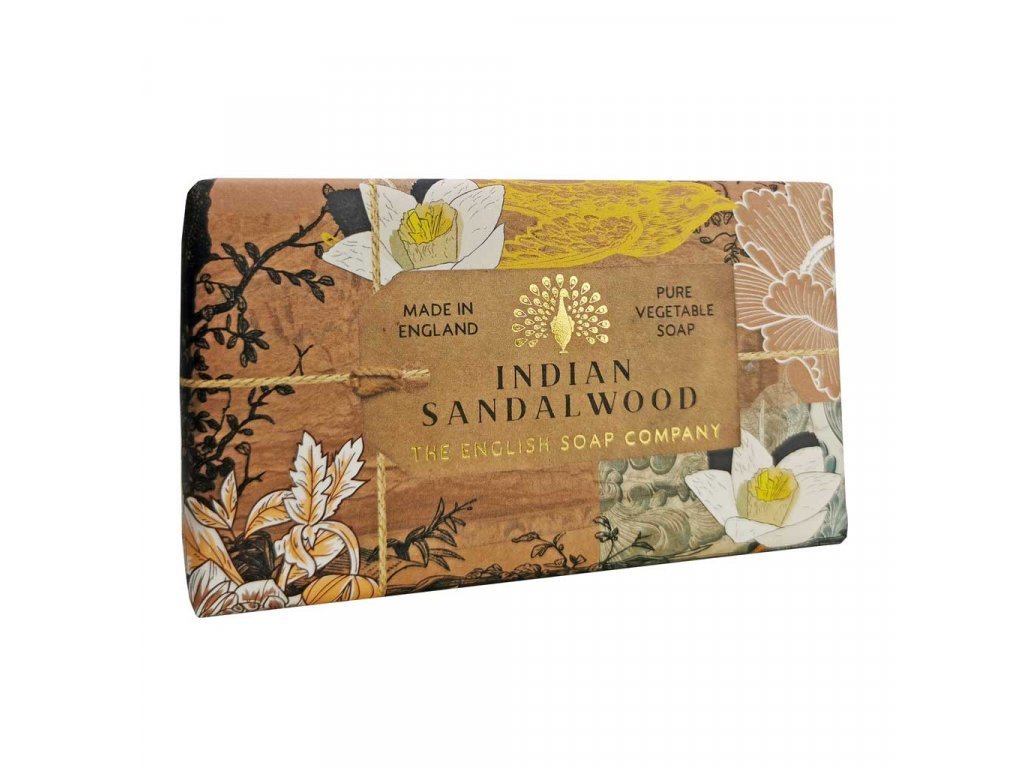 Anniversary Indian Sandalwood Soap je voňajúci teplým santalovým drevom a nádychom korenia a vytvára bohatú, ale korenenú vôňu. Srdce z borovice, pomarančového kvetu, cédrového dreva a klinčekov vyvažuje vôňu so základom suchej ambry, tabaku a pižma. Toto mydlo obohatené o hydratačné bambucké maslo vyživí všetky typy pleti.