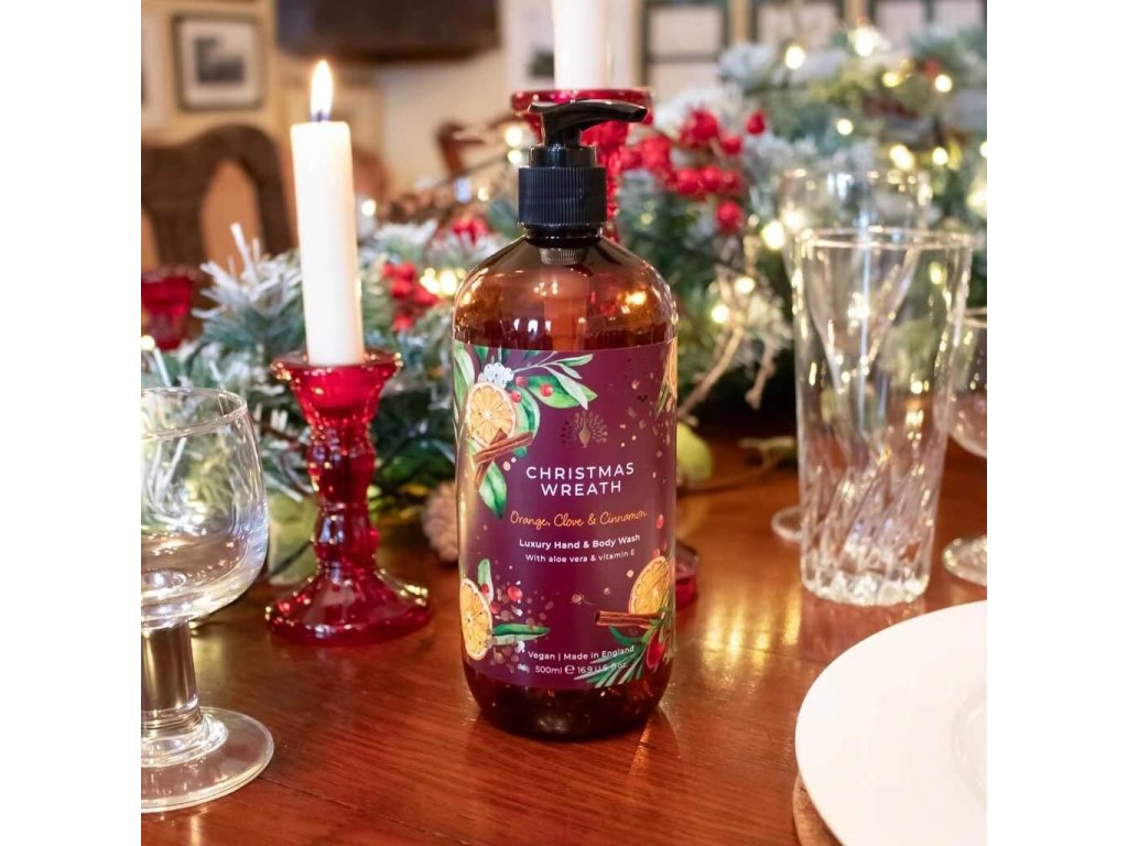 Vianočné tekuté mydlo na telo aj ruky svôňou pomaranča, škorice a klinčeka okamžite vyčarí sviatočnú náladu. Jemné zloženie obohatené o aloe vera a vitamín E poskytuje Vašej pokožke starostlivosť a hydratáciu pri každom umytí s výsledkom jemnej a sviežo prevoňanej pokožky.