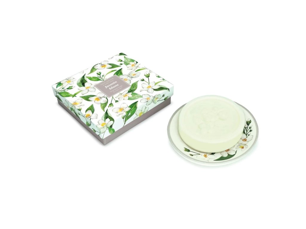 Darčeková sada obsahuje tuhé mydlo a mydelničku. Kvalitné mydlo s prírodným zložením hydratuje pokožku a zanecháva ju hebkú a hladkú na dotyk. S jemnou vôňou jazmínu.