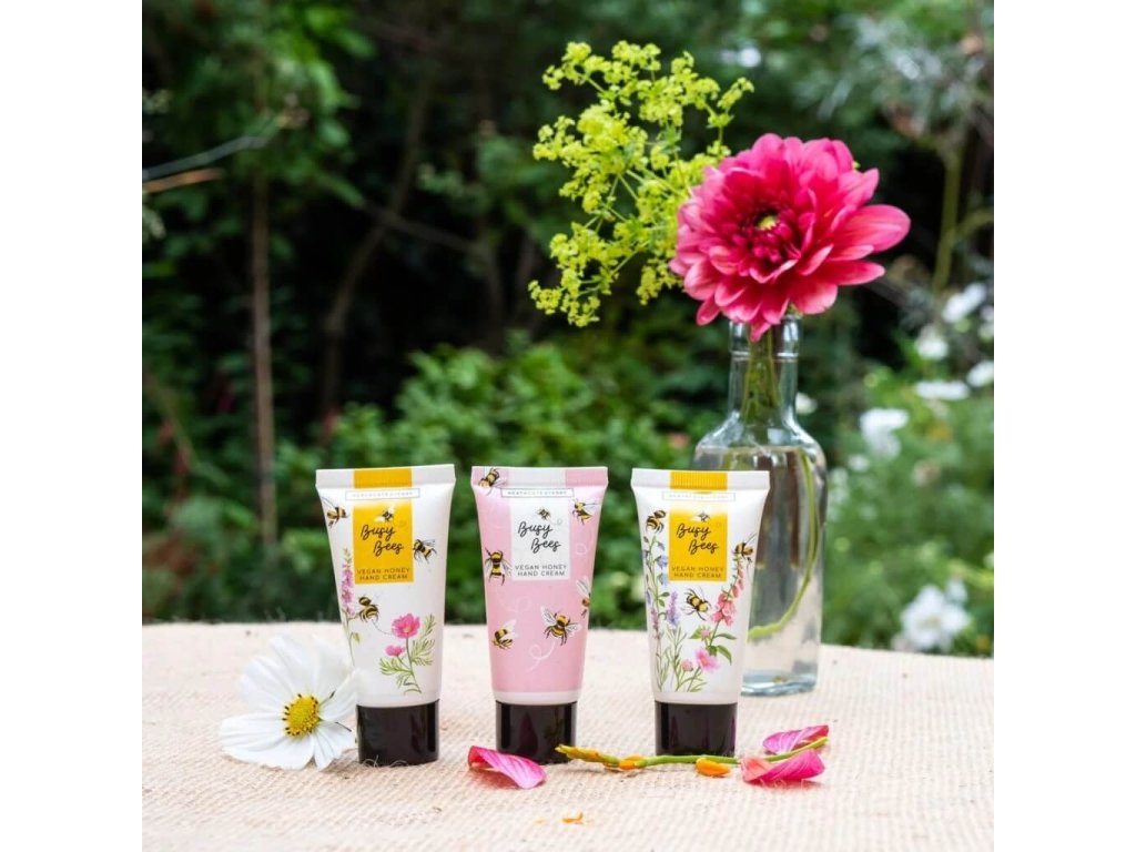 Pozývame všetkých milovníkov včiel! Tri vegánske medové krémy na ruky s rôznymi vôňami bez medu a výťažkami z kvetu včelieho medu a listov manuky, ktoré udržia vaše ruky jemné a voňavé a zároveň podporia čmeliakov.