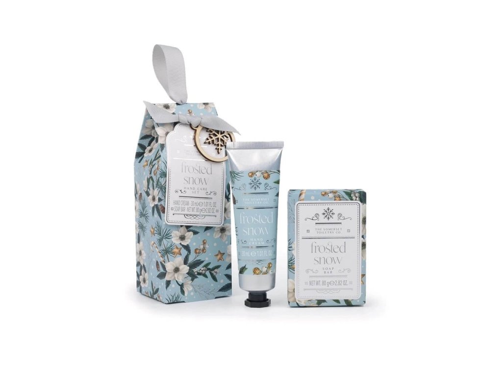 Sada obsahuje hydratačný krém na ruky a tuhé mydlo, ktoré šetrne čistí a zanecháva pokožku hebkú, vyživenú a prevoňanú. Nechýba ani drevená vianočná ozdoba, vďaka ktorej sa sada stáva ideálnym darčekom alebo krásnou pozornosťou.