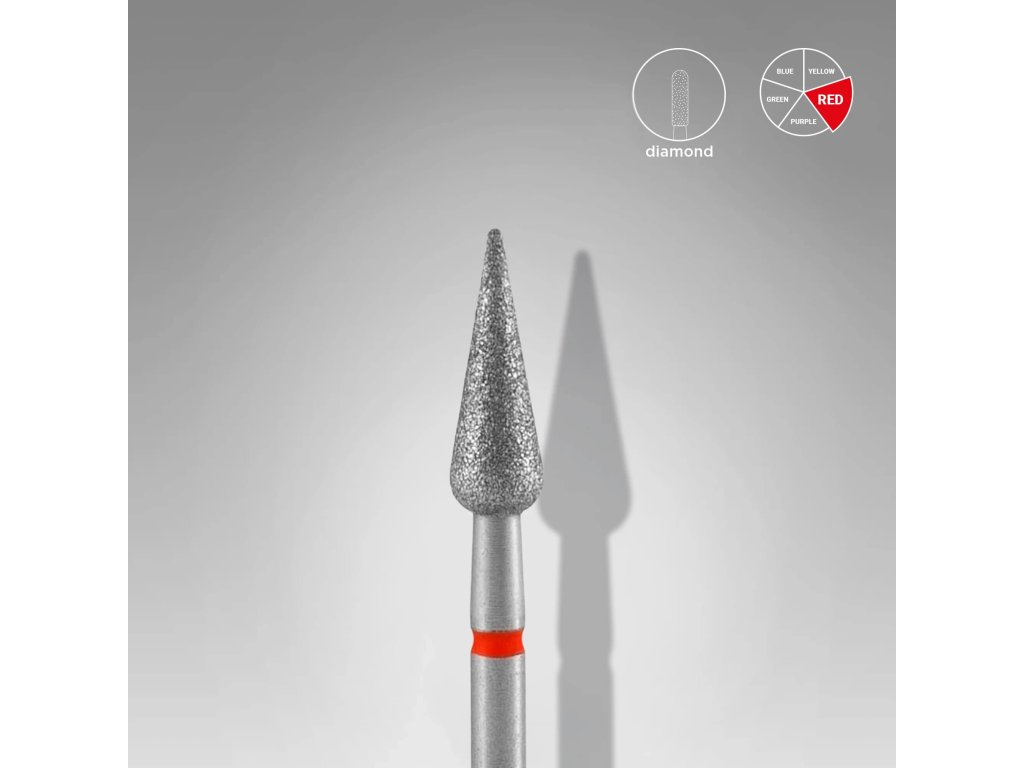 Diamantová frézka na prístrojovú manikúru/pedikúru. Červený zárez s jemnou abrazivitou na jemné opracovanie pokožky, vhodná pre prácu začiatočníkov aj skúsených technikov.