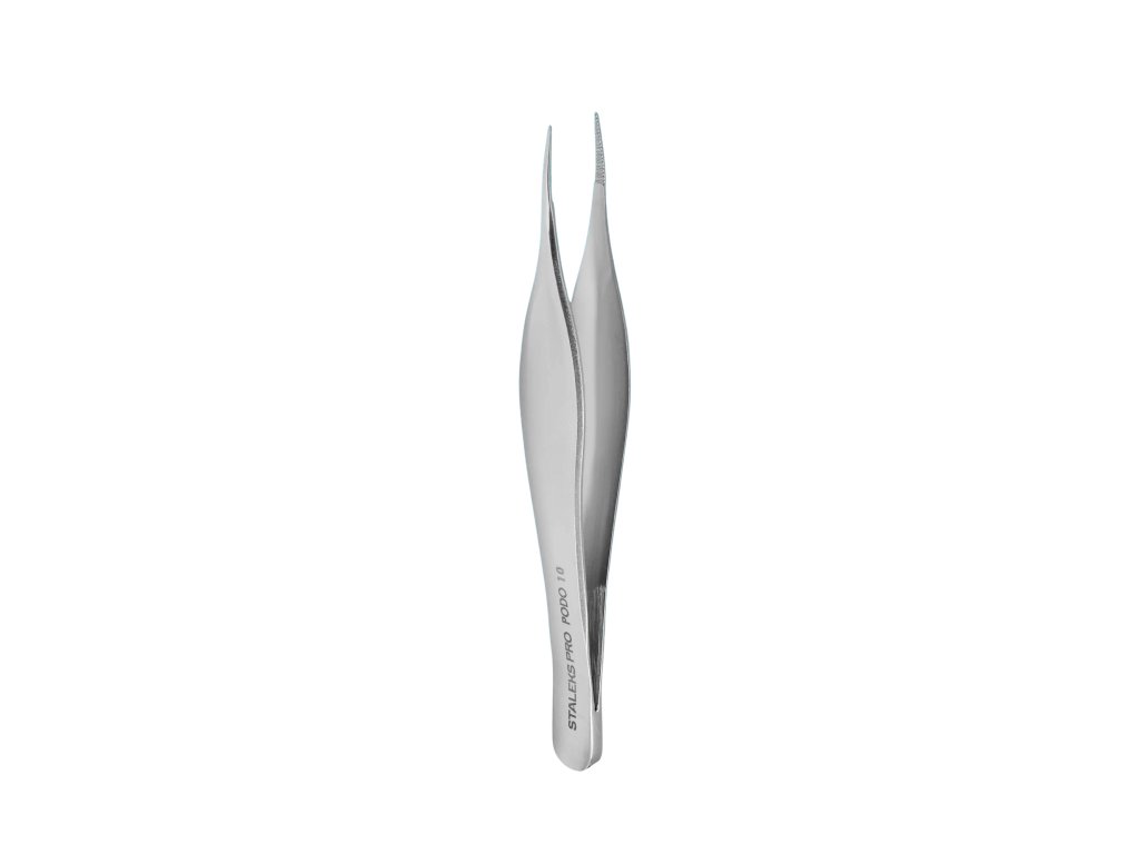Podologická pinzeta na extrakciu prvkov zarasteného nechtu, podkožných mozolov, odstránenie fragmentov epidermy, nechtovej substancie, cudzích predmetov z rán a bočných nechtových záhybov.