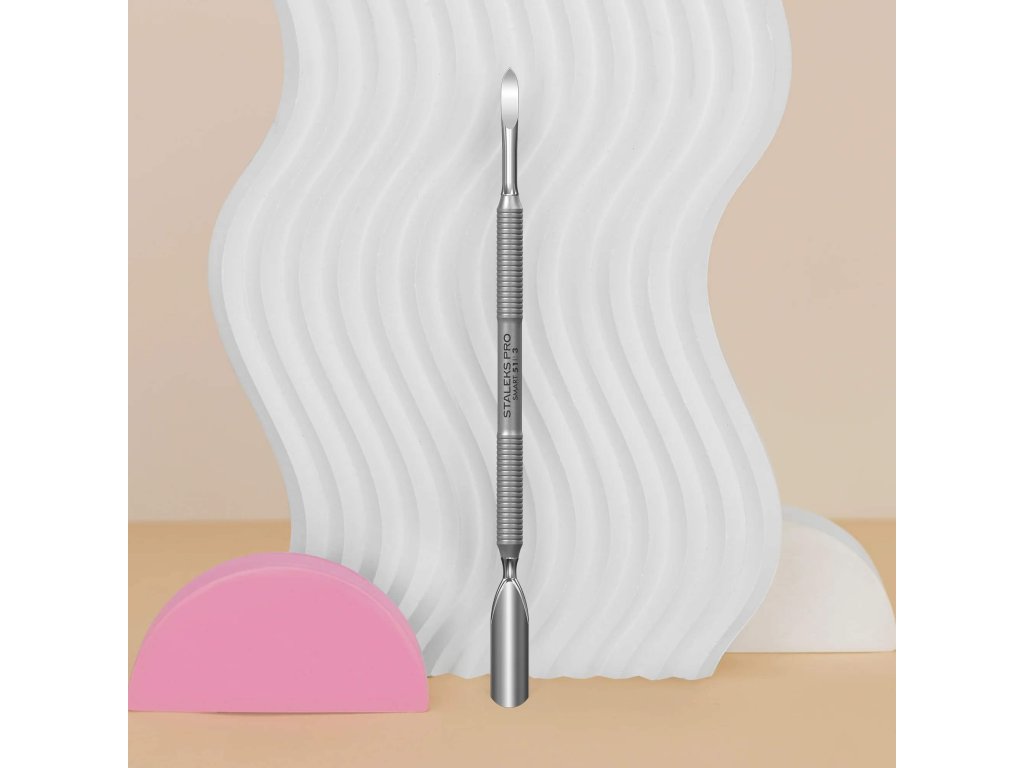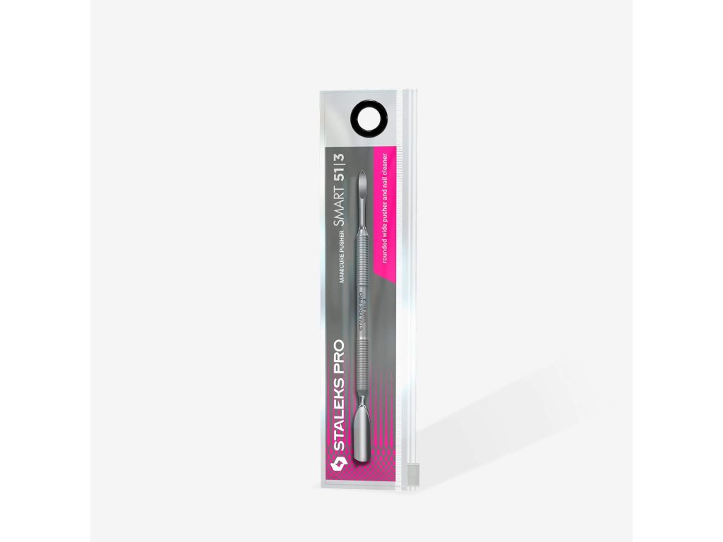 Profesionálny zaoblený široký zatláčač Staleks s čističom nechtov z rady Smart.