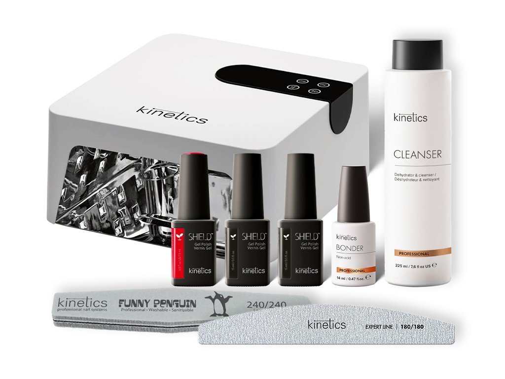 Do tejto cenovo zvýhodnenej sady si môžete vybrať farebný gél lak Kinetics BioBased No HEMA podľa Vášho vlastného výberu! Stačí do poznámky tu v produkte alebo v poznámke na úplnom konci Vašej objednávky uviesť číslo farebného gél laku Kinetics BioBased No HEMA, ktorý si do sady želáte.
